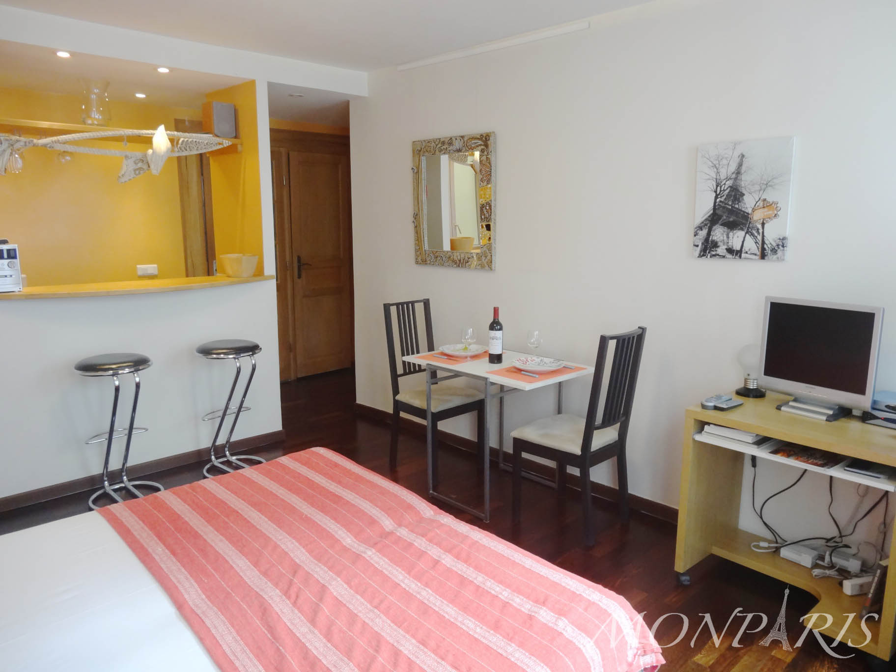 Estúdio muito agradável e confortável com banheiro amplo e charmoso, que fica no 2° andar com elevador, em um prédio do final do século XIX. Bem situado, entre as duas ruas mais animadas e famosas do 7éme, Rue Saint Dominique e Rue Cler, conhecidas pelo seus tradicionais restaurantes e comércios. A um passo do jardim do Champs de Mars e da Torre Eiffel, sem esquecer do restaurante Les Ombres, na cobertura do moderno Museu du Quai Branly. Próximo de 1 estação de metrô e várias linhas de ônibus.
